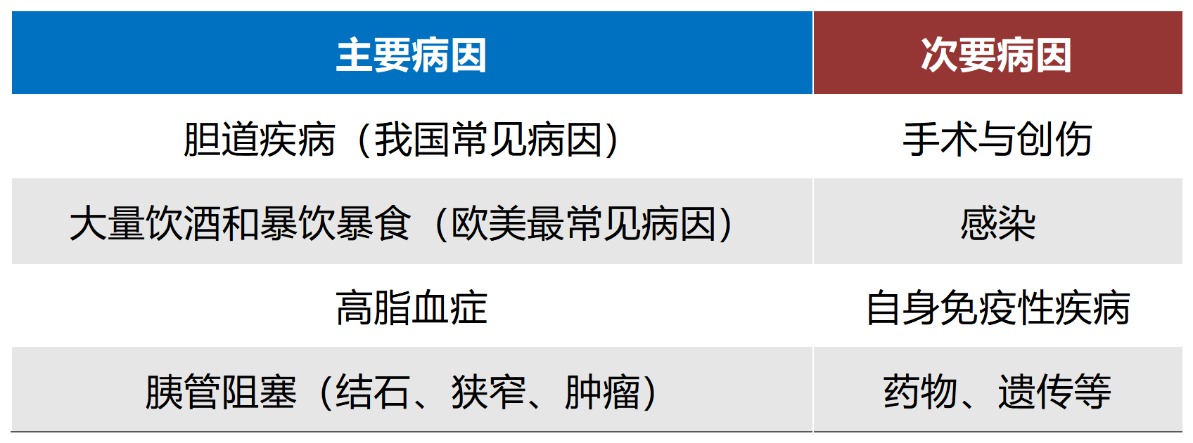 急性胰腺炎病因众多,不同病因引起的急性胰腺炎的病人年龄、性别分布及疾病严重程度各不相同。