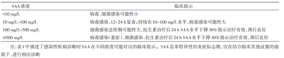 感染性疾病SAA检测结果的临床提示